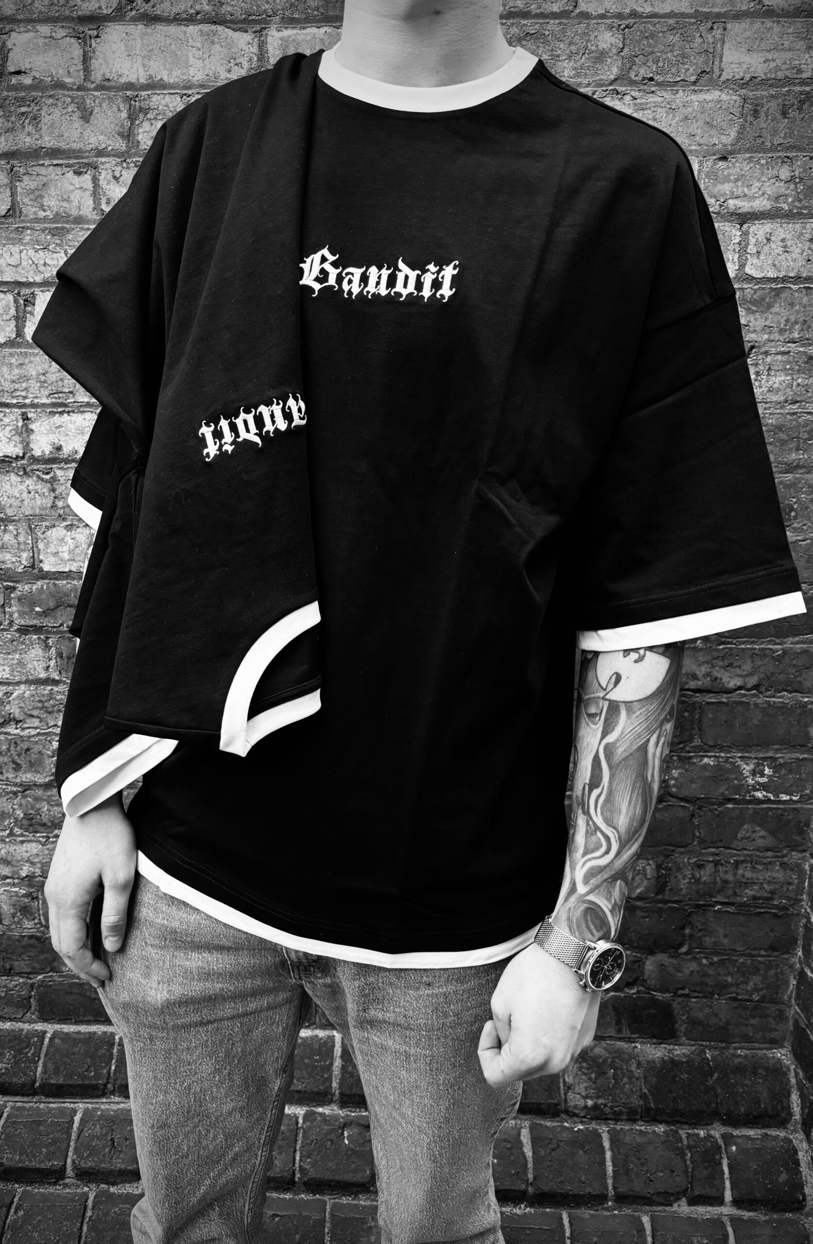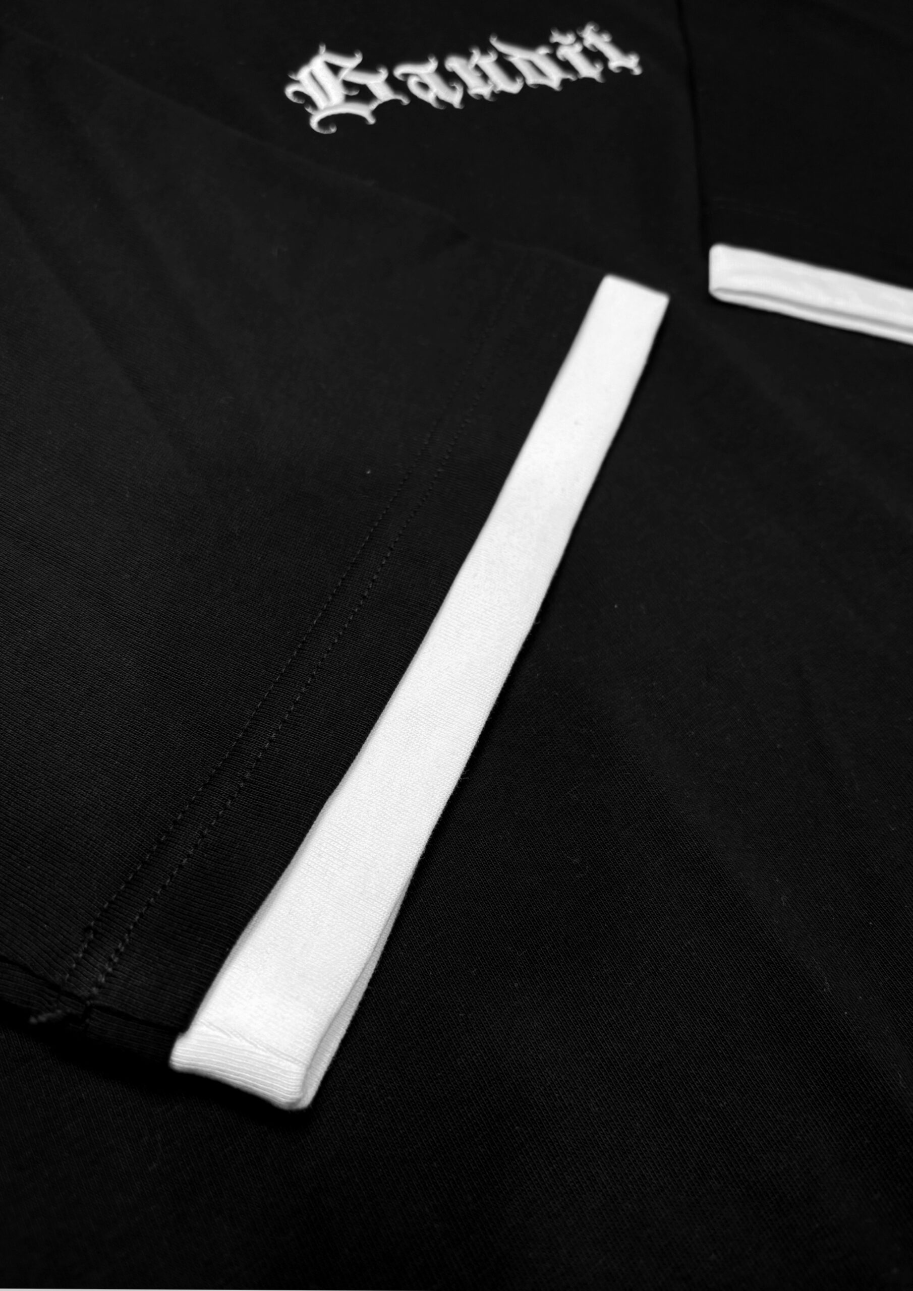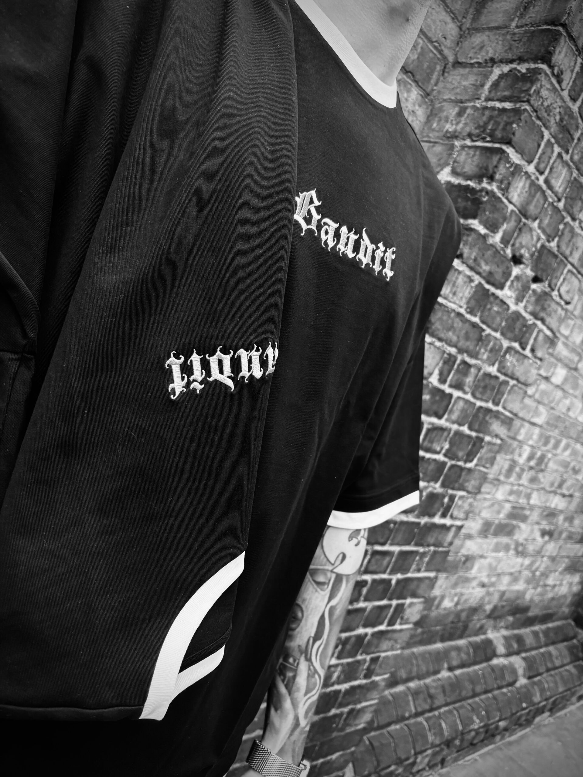 This Black Bandit tee with white sleeve endings is the first piece of the collection for Bandit Threads.